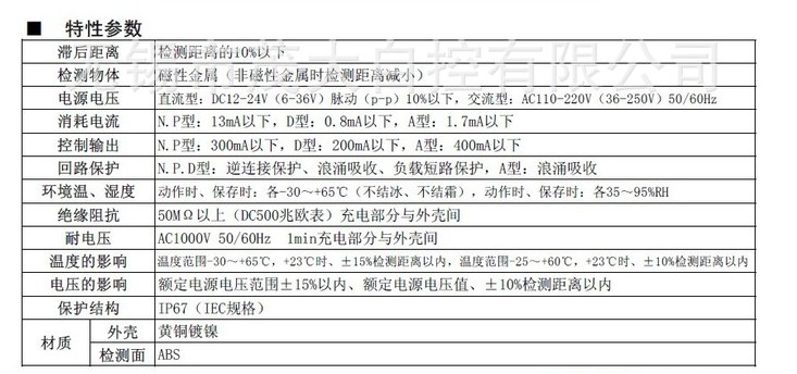 图尔克接近开关的技术指标讲解