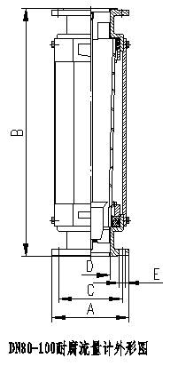外形及安装连接尺寸 DN4 一 10 耐腐流量计外型为水平安装, DN15 一 50 DN80 一 100 耐腐流量计为垂直上下安装。