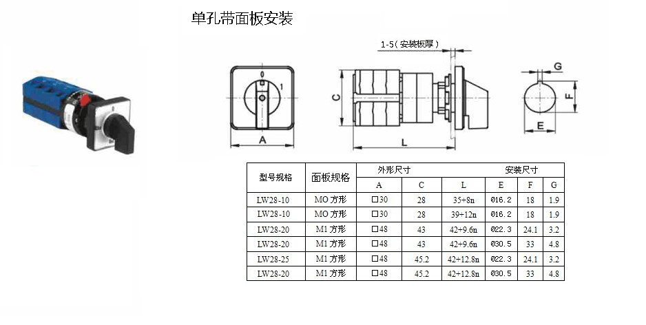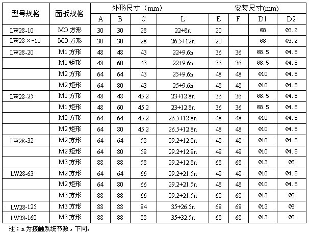 (1)定位型转换开关有1~12节(63A及以上的开关仅有8节);