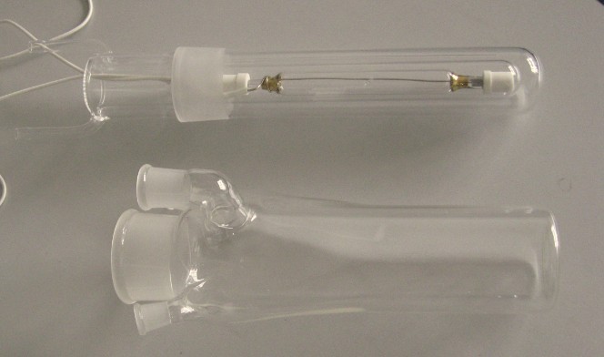 冷阱: CEQW60,石英玻璃材质,用于长弧氙灯的冷却,可以通除部分红外光降低热 效应,磨口60/40,有效长度220mm