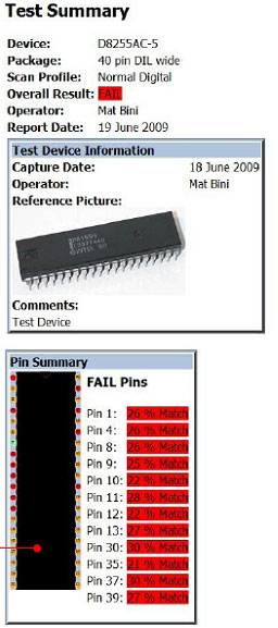 1)软件可产生一详细的测量报告, 包含集成电路相片。这份报告可用于深入分析好坏集成电路的差异具体原因。