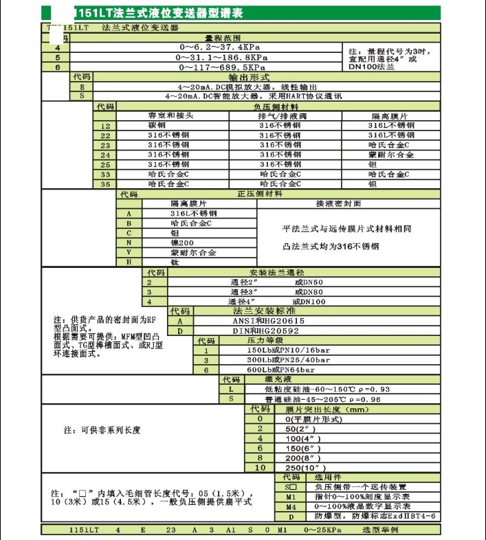 型号:BLH1151LT单平法兰液压变送器