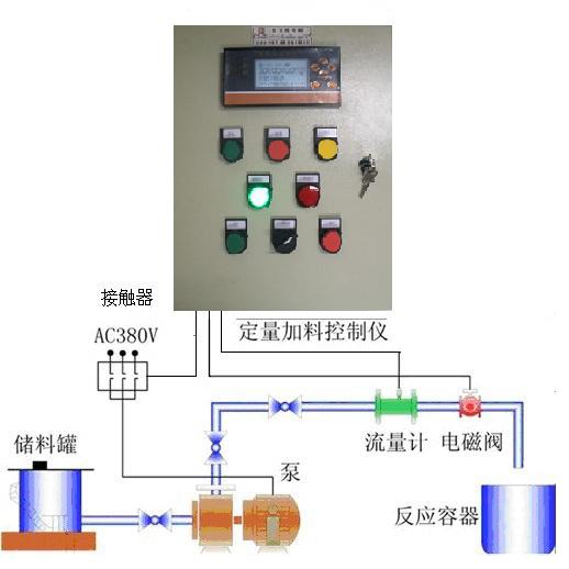 定量控制仪接收流量计的流量信号后,在其内部完成流量的累计,同时在控制仪内部设定好所需要的定量控制值,当定量控制仪显示的累计数值达到所设定的定量控制值时,定量控制仪输出开关量信号。此时利用该开关信号通过配接继电器或接触器来控制安装在管道上的断流设备,从而达到定量控制的效果。