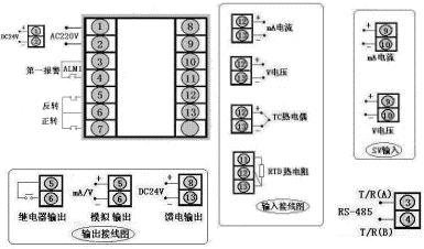 三、 仪表外形及接线图(以下为基本配线,特殊订货请参考见随机接线图)