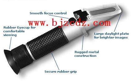 SY.35-3T手持防冻液冰点仪是为测量防冻液、玻璃液的冰点及电池溶液的比重而设计的,只要滴几滴液体在棱镜上,然后向着光观察,就可以快速读出溶液的测量值。通过测得的百分比可以知道以丙二醇和乙二醇为基的防冻系统的冰点和汽车前窗玻璃清洁液的冰点,还可用来检查蓄电池内电解的比重及使用状态。测量范围:防冻液冰点:0到-50℃;电池液比重:1.10到1.40;玻璃液冰点:0至-40℃。操作说明:掀起盖板用柔软绒布交盖板及棱镜表面擦拭干净;将待测液体用吸管滴于棱镜表面,合上盖板轻轻按压,将折射计对向明亮处,旋转目镜使视场内刻度线清晰,读出明暗分界线在标示板上相应标尺上的数值即可;测试完毕,用绒布擦净棱镜表面和盖板,清洗吸管,将仪器放还于包装盒内;在测量电池液时,注意不要洒在皮肤和眼睛上,以防烧伤,测试后仔细擦净仪器。本公司月产量达40000支,供货迅速,产品1年保修,终身维护,价格优惠,品质卓越,欢迎您来电咨询、采购!