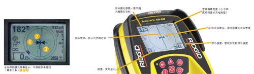 ● 探测带有信号发生器的高压清洗机水管和疏通机钢索液晶屏显示