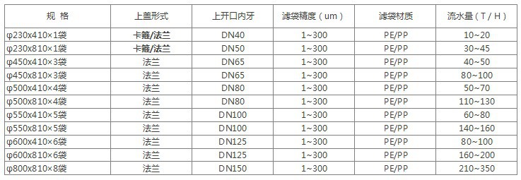 袋式过滤器规格参数:(参考)