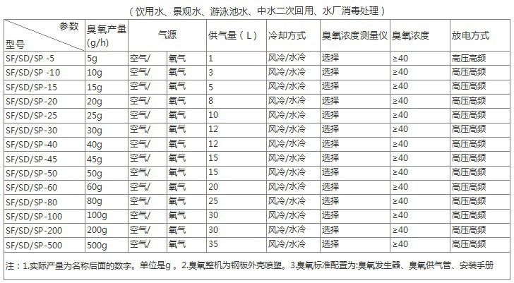 3、按冷却方式划分,有水冷型和风冷型。臭氧发生器工作时会产生大量的热能,需要冷却,否则臭氧会因高温而边产生边分解。水冷型发生器冷却效果好,工作稳定,臭氧无衰减,并能长时间连续工作,但结构复杂,成本稍高。风冷型冷却效果不够理想,臭氧衰减明显。总体性能稳定的高性能臭氧发生器通常都是水冷式的。风冷一般只用于臭氧产量较小的中低档臭氧发生器。在选用发生器时,应尽量选用水冷型的。需要提醒用户的是,某些厂家将本来是中低档结构的臭氧发生器,也简单加装了水冷却系统。但由于这种臭氧发生器的根本结构没有改变,所以性能不会得到提高。