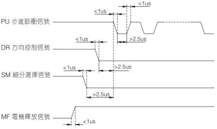 ● 步进脉冲停止超过100ms时,线圈电流自动减半