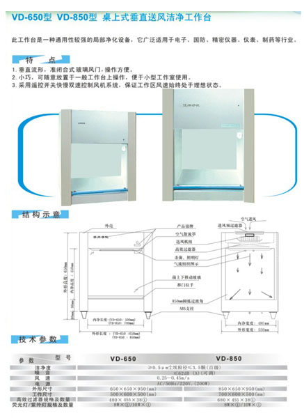 VD-850 VD-650型桌上式垂直送风洁净工作台