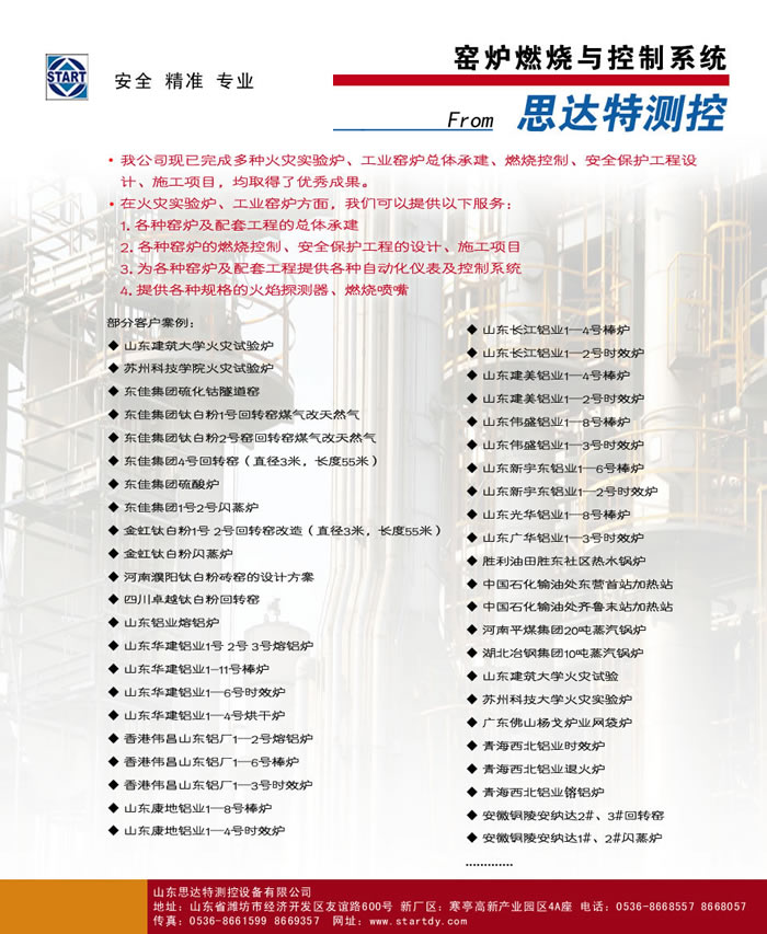山东思达特测控设备有限公司是一家专业研发生产流量仪表(AS气体超声波流量计、智能型涡街流量计、电磁流量计、微性液体流量计、压力变送器、无纸记录仪等)并提供燃气控制、热网监控、工业窑炉和远程控制等工程服务的高科技股份制公司。
