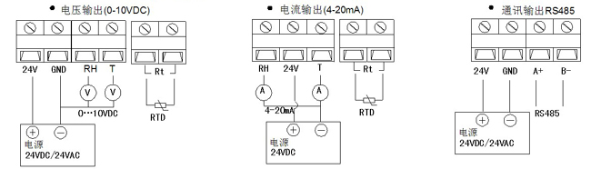4…20mA(二线),0…10V(三线),RS485,热电阻