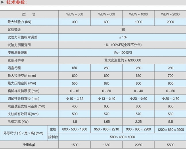 WEW微机屏显液压材料试验机适用试样:棒材、板材、螺纹钢、线材等,量程范围:100kN-2000kN。