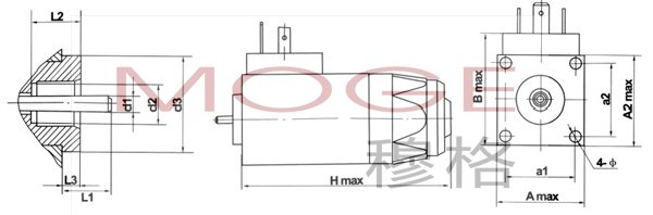 | 型号\尺寸 | A1 max | A2 max | B max | H max | a1 | a2 | d1 | d2 | d3 | L1 | L2 | L3 | Ф |