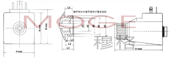 ●电磁铁采用符合ISO4400标准的插座。有带指示灯、不带指示灯两种规格,您可以根据需要进行选择。带指示灯插座的电压规格必须与电磁铁本体电压规格相符。