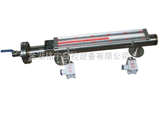 液位计根据浮力原理和磁性耦合作用研制而成。当被测容器中的液位升降时,液位计主导管中的浮子随之升降,浮子内的磁钢通过磁耦合传递到现场指示器,驱动红、白翻柱翻转1800,当液位上升时,翻柱由白色转为红色、当液位下降时,翻柱由红色转为白色,指示器的红、白界位处为容器内介质液位的实际高度,从面实现液位的指示。