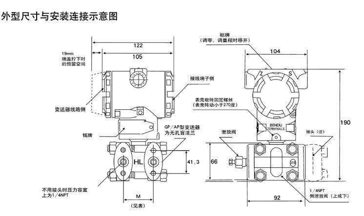正负迁移:零点经过正迁移或负迁移后,量程、测量范围的上限值和下限值的值,均不能超过测量范围上限的100%。