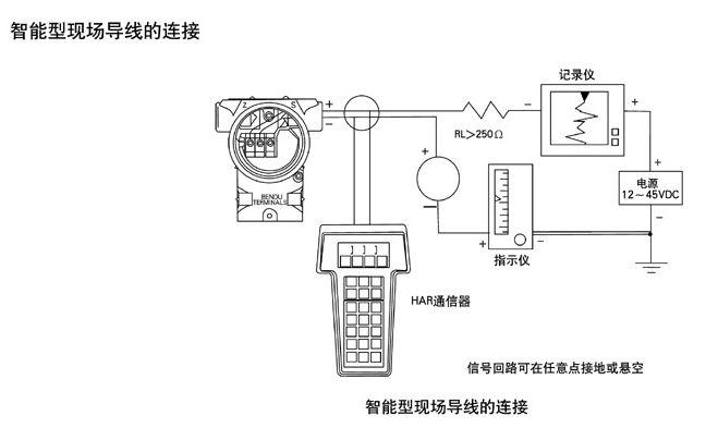 数字通信线路为变送器提供一个与外部设备(如275型智能通信器或采用HART协议的控制系统)的连接接口。此线路检测叠加在4-20mA信号的数字信号,并通过回路传送所需信息。通信的类型为移频键控FSK技术并依据BeII202标准。