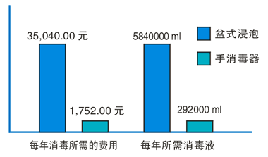 通过以上比较可以看出,采用手消毒器的喷雾式消毒比盆式浸泡消毒更经济,更实惠,更能提高工作效率,并且能使生产成本大幅度降低,真正可做到小投入大回报。 |