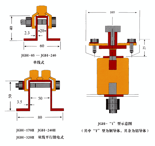 滑触线分为单线式和双线平等馈电式两种,除双线平等式以JGH-□II表示外,单线式不另加表注,其断面如下: