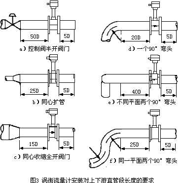 涡街流量计量程范围宽,在实际应用中,一般主要考虑测量饱和蒸汽的流量不得低于涡街流量计的下限,也就是说必须满足流体流速不得低于5m/s。根据用汽量的大小选用不同口径的涡街流量变送器,而不能以现有的工艺管道口径来选择变送器口径。
