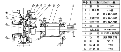 IHF型氟塑料离心泵技术参数 流量:6.3~400m3/h IHF型氟塑料离心泵结构图