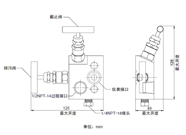 带排污孔及堵头,仅适用于T型及H型三阀组