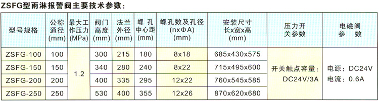ZSFG型雨淋报警阀也可以和泡沫系统组成泡沫雨淋系统,用于扑救有爆炸性危险的液体火灾。