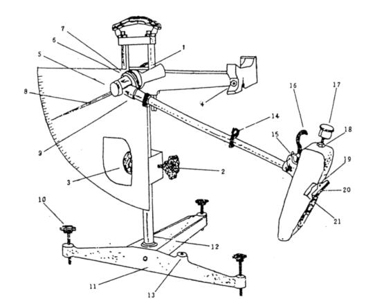 1、2-紧固把手;3-升降把手; 4-释放开关; 5-转向节螺盖; 6-调节螺母;7-针簧片或毡垫 8-指针; 9-连接螺母; 10-调平螺栓; 11-底座; 12-铰链; 13-水准泡; 14-卡环; 15-定位螺丝;16-举升柄;17-平衡锤;18-并紧螺母;19-滑溜块;20-橡胶片; 21-止滑螺丝 1、座:由T型腿,调平螺丝和水准泡组成。对仪器起调平,支承作用。 2、立柱:由立柱、升降机构,导向杆及仪器把手组成。用于升降和固定摆头的位置。 3 释放开关:安装于悬臂上的开关。用于保持摆杆水平位置和释放摆落下的作用。 4 摆头:由紧固把手,摆轴,转向节,轴承等组成,起联结摆、固定位置,保证在摆动平面内自由摆动的作用。 5、示数系统:由指针、毛毡圈、法兰、紧固螺母及度盘组成,指针可直接指示出摩擦系数数值。 6 摆:由上、下部接头、摆杆、弹簧、杠杆系、举升柄、外壳、滑溜块及橡胶片组成。它对摆动中心有规定力矩,对路面有规定压力,本身前与后,左与右的力矩平衡,它是度量路面的摩擦系数的尺度。 BM-3型摆式摩擦系数测定仪试验步骤 1 选点:在测试路段上,滑行车方向的左轮轮迹,选择有代表性的五个测点,每一测点相距约5~10m,距路面边缘不应小于1m 。 2、仪器调平: ① 将仪器置于测点上,并使摆的摆动方向与行车方向一致。 ② 转动调平螺丝,使水准泡居中。 3、 调零: (1)放松固定把手,转动升降把手,使摆升高并能自由摆动,然后旋紧把手。 (2)将摆向右运动,按下释放开关。使卡环进入释放开关槽,并处于水平释放位置,然后松开释放开关,此时指针应被拨至紧靠拨针片。 (3)按下释放开关,摆向左运动,并带动指针向上运动,当摆达到zui高置后下落时,用左手将摆杆接住,此时指针应指零。若不指零时,可稍旋紧或放松毛毡圈调节螺母。重复本项操作,直至指针指零。 4、 标定滑动长度: (1) 用刷子清除摆动范围内路面上的松散颗粒和杂物 (2) 让摆自由悬挂,在橡胶片的外边平行摆动方向设置标准尺(126mm),放松紧固把手,转动升降把手。使摆缓缓下降,当滑溜块上橡胶片刚接触路面时,提起举升柄使滑溜块升高,将摆向右运动,并转动升降把手使摆下降一段距离,然后放下举升柄使摆慢慢向左运动,直至橡胶片的边缘刚刚接触路面,对正126mm尺的一端,再用手提起举升柄,使滑溜块向上抬起,并使摆继续向左运动,放下举升柄,再将摆慢慢向右运动使橡胶片的边缘再一次接触路面。橡胶片两次同路面的接触点的距离应为126mm(滑动长度)。若不符合126mm,可转动升降把手,再重复上述步骤进行粗调。当基本符合126mm后,旋紧紧固把手,再校正一遍,若滑动长度不符合标准时,则升高或降低仪器底座正面的调平螺丝来校正,但须调平水准泡。使滑动长度符合要求。尔后,将摆置于水平释放位置。 5、 测定:用水浇洒路面,并用橡皮刷刷刮,以便洗去泥浆,然后再洒水,并按下释放开关,使摆在路面上滑过,指针即可指示出路面的摩擦系数值(一般一次可不作记录)。当摆向回摆时,用左手接住摆杆,右手提起举升柄使滑溜块升高,将摆向右运动并按下开关,使摆长环进入释放开关,并将摆针拨至紧靠拨针片,重复此项,测定五次(每次均应洒水),记录每次的数值。五次数值差不大于三个单位(即刻度盘的一格半)如差值大于三个单位,应检查产生的原因,并再次重复上述各项操作,至符合规定要求为止。 6、测定结果: (1)每个测点用五次测定读数的平均值代表测点的摩擦系数值,并用五个测点的摩擦系数的平均值,代表该测定路段摩擦系数值。 |