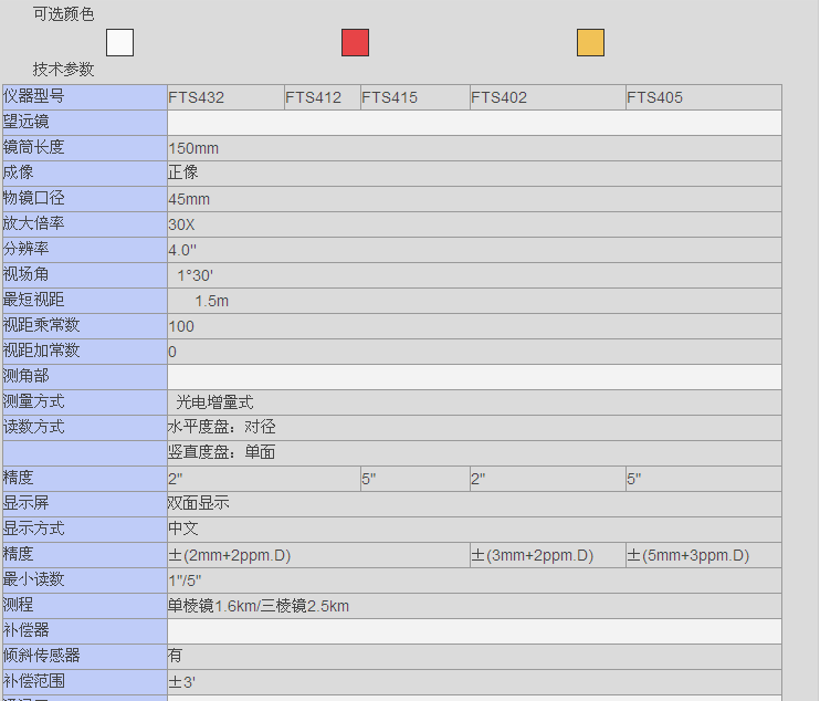 | 仪器型号 | FTS432 | FTS412 | FTS415 | FTS402 | FTS405 |