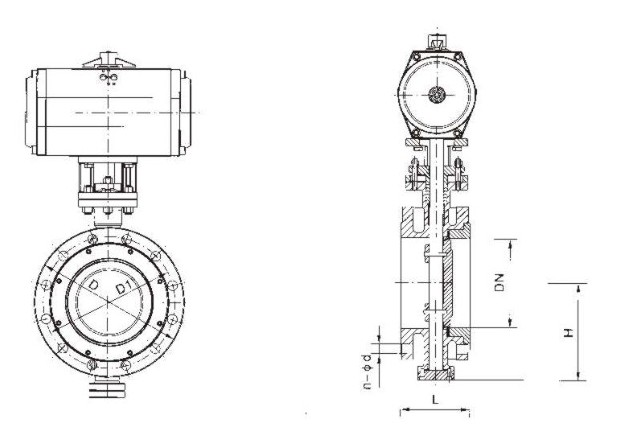 法兰式硬密封气动蝶阀D643H概述硬密封气动蝶阀体采用一个U型不锈钢密封圈,该的弹性密封圈与经过抛光的蝶板三维偏心接触。解