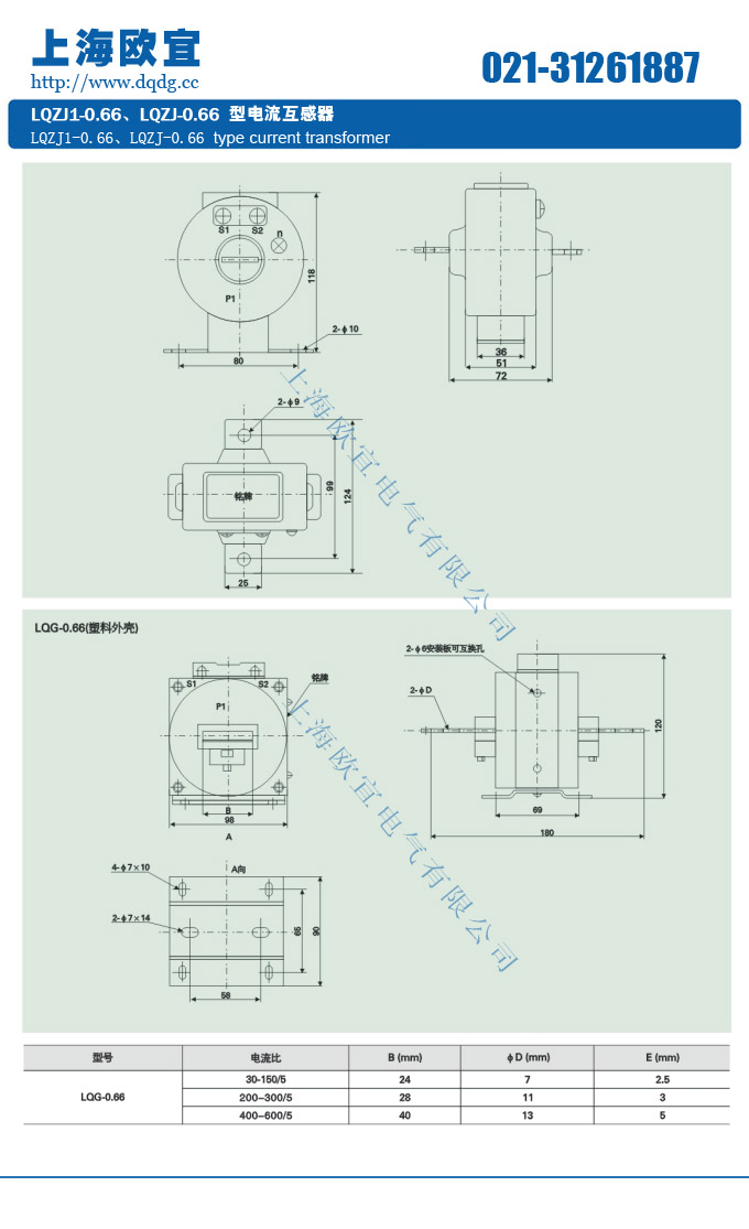 声明:这里是产品的接线图、变比、参数、精度、准确级、保护级、作用原理、外形尺寸等详细信息页面。本页LQZJ1-0.66电流互感器的信息仅供参考,如有改动不另行通知。订购前请来电咨询,我们有专业人士为您选型。 另外可根据客户需求,订制非标产品。