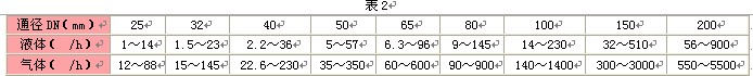 ![]() 2、液体、工况气体流量范围(见表2)