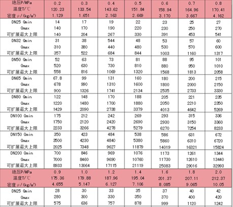 3、饱和水蒸汽质量流量范围(见表3)
