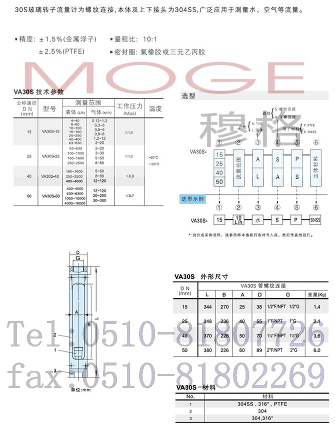 免责声明:以上所展示的[VA30S-15,VA30S-25 玻璃转子流量计 ]信息由会员[无锡穆格流体控制科技有限公司]自行提供,内容的真实性、准确性和合法性由发布会员负责。