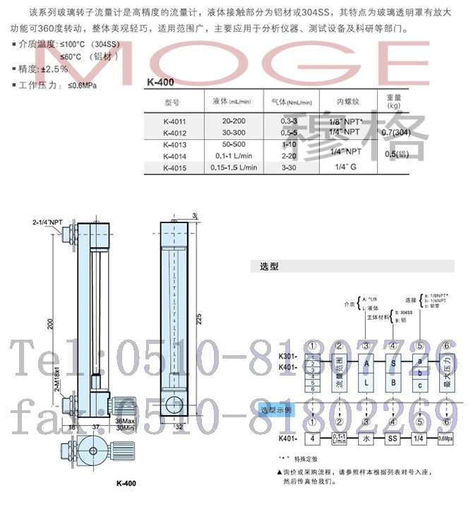 免责声明:以上所展示的[K-4011,K-4012,K-4013 玻璃转子流量计 ]信息由会员[无锡穆格流体控制科技有限公司]自行提供,内容的真实性、准确性和合法性由发布会员负责。
