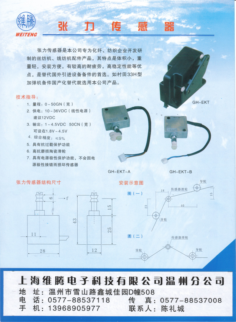 该产品适用于日本村田33H型加弹机TCS张力传感器对于有实力和有意向的客户,我们可以提供产品试用,满意后在合作!QQ 2