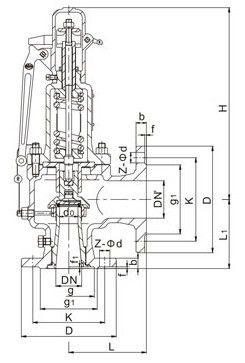 弹簧全启式安全阀外形尺寸和连接尺寸