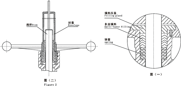 此种刀形闸的上密封突破了常规的密封形式,采用上盖结构,使得上密封由大面积的矩形密封改成了小面积的圆周密封,密封性能大大提高。在圆周密封的基础上,又采用了目前上的浮动密封改成了面积的圆周密封,密封性能大大提高。在圆周密封的基础上,又采用了目前上的浮动密封结构(见图一),使得上密封达到了与管道同寿命的程度,从而整体上提高了阀门的使用寿命。