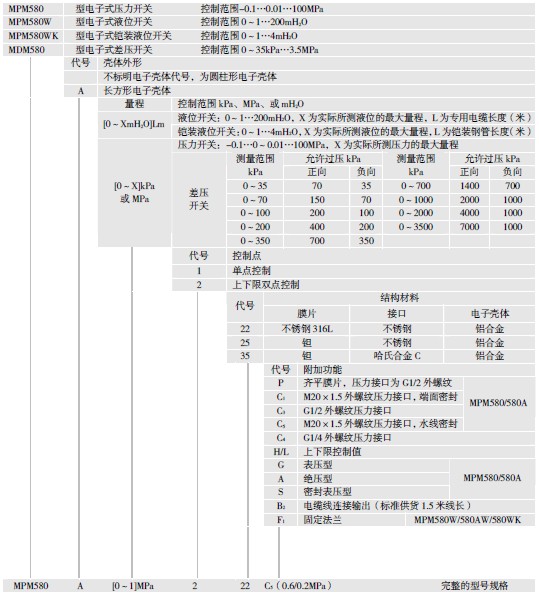型号:MPM/MDM580型