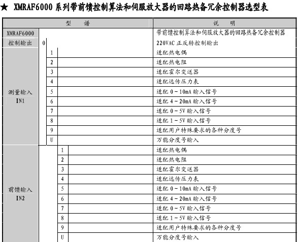 IN2是前馈控制输入(XMRA6000)或辅助输入端(XMRA5000),可接收各种热电阻、热电偶、标准信号等任一输入信号,各种输入信号之间分度号可切换,即设即用。
