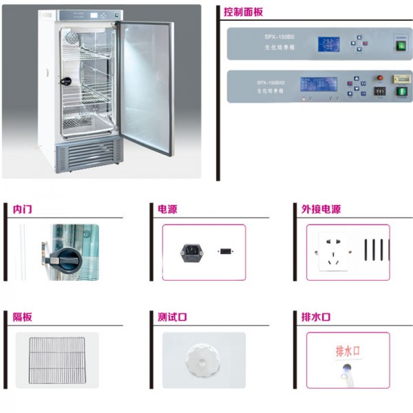 生化培养箱(SPX)系列升级款,0~65℃的各种恒温实验及环境实验,水分析、BOD/细菌霉菌微生物培养、植物育种栽培、样品保存。内容积80L、150L、250L。