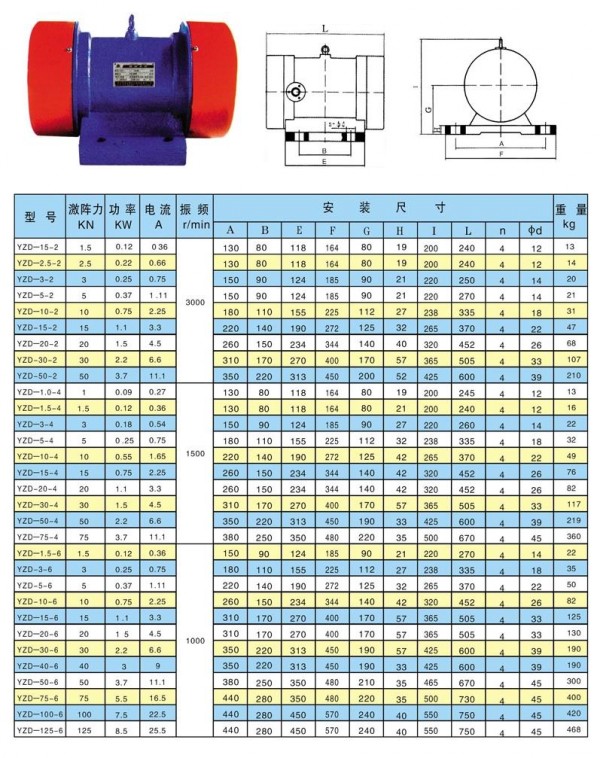 YZD振动电机为机座联体电机,稳固性能好,安装方便,体积重于普通振动电机,其于YZS振动电机为同一型号振动电机