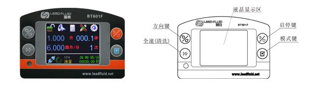 BT601F分配型智能蠕动泵流量范围0.006-2300毫升/分钟。采用彩色液晶和触摸屏技术,操作界面简单,直观,明了。主要适用于各种复杂的液体定量分配,适用于计量和定量给料,可以实现的流量传输控制。对液量分装精度要求高时,使用液量分配模式更加方便;对产量要求高时,使用时间分配模式更加方便;需要将一定液体分装为若干份液体时请使用复制分配模式。设置为流量模式时,完全等同于一台流量型蠕动泵。为了减小不必要的风扇噪音,采用了智能温控技术。在RS485通讯中,因为采用了MODBUS协议,更易于与其他控制设备如计算机,人机界面,PLC等连接。