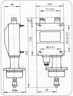 ● 将控制器的开关接线端子接入压缩机电机的电源控制回路中(接1.3端子则降压接通,升压断开)。将被控气体导入控制器波纹管室。