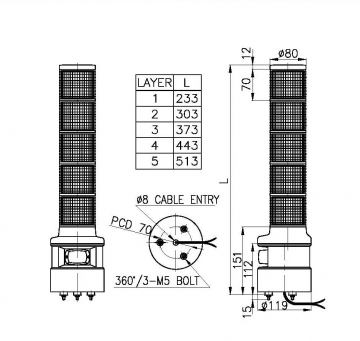 高音量喇叭的 Ø80 氙灯管 爆闪型 多层式警示灯