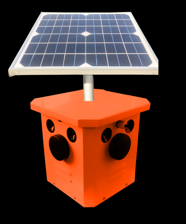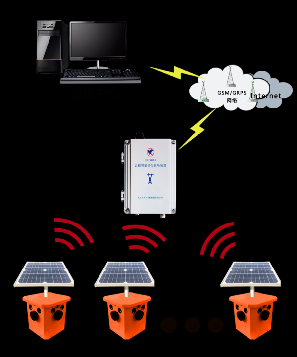 综合:具有多普勒雷达、拾音器、振动传感器、图像等多种探测入侵鸟类的能力;具有语音、爆闪灯、超声波、驱鸟风车等多种驱赶鸟类的能力;