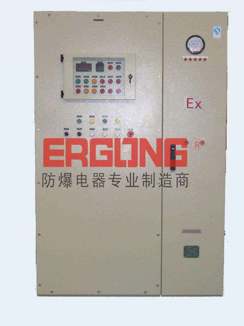 采用介质隔离点燃源的防爆措施。即:把用户所用的电器元件安装在一个充满正压洁净气体的柜体内,使外部环境中易燃易爆的混合性气体无法接触到电器元件在正常工作时所产生的电火花或危险温度,从而达到电器防爆的目的。