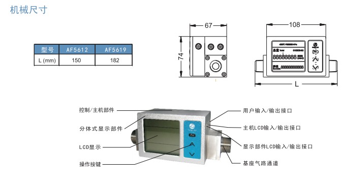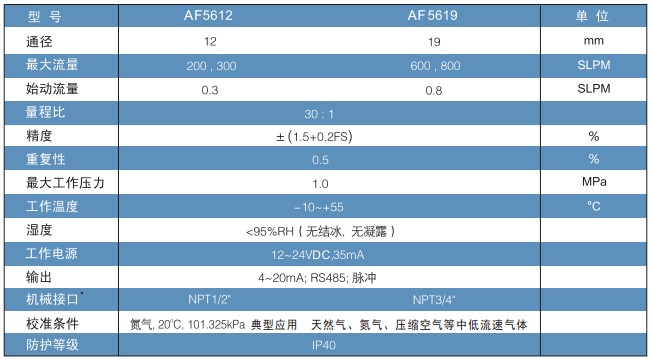 AF5600系列质量流量计专门为需要显示器和表体分离的应用需求而设计的。例如医院供氧系统小型空分系统。该流量计的标准工业用户界面(RS485/4~20mA)及用户自定报警功能更好实现的异地或网络监控。现有的产品是MF5612和MF5619可分别测量0-300SLPM和0-800SLPM气体流量。
