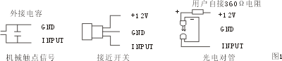 ③、INPUT为计数输入端,开关量、电平脉冲两种输入信号兼容。开关量如常开触点、光电对管。电平脉冲:低电平:-30V—+0.6V;高电平:+4V—+30V。(见图1) |